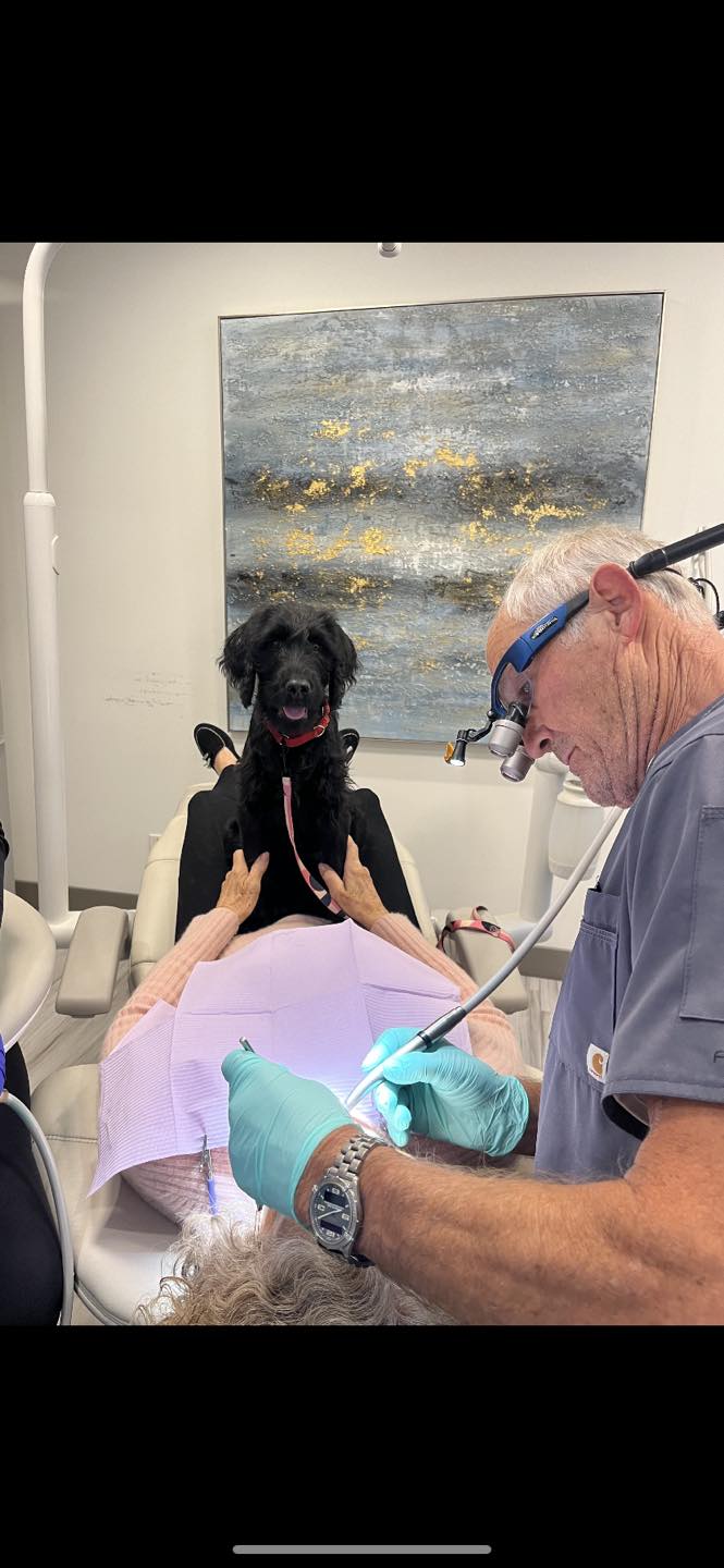 This is Lucy, a pup from our previous litter who is a therapy dog in a dental office